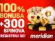 Ono što se nije promenilo i što je konstanta za sve jeste vrhunska ponuda u sportskoj kladionici Meridian, koja podrazumeva gotovo bezbroj igara i NAJVEĆE KVOTE NA PLANETI, a uz to fantastičan BONUS DOBRODOŠLICE u vidu 300 POKLON SPINOVA i 100% BONUSA NA PRVI DEPOZIT.